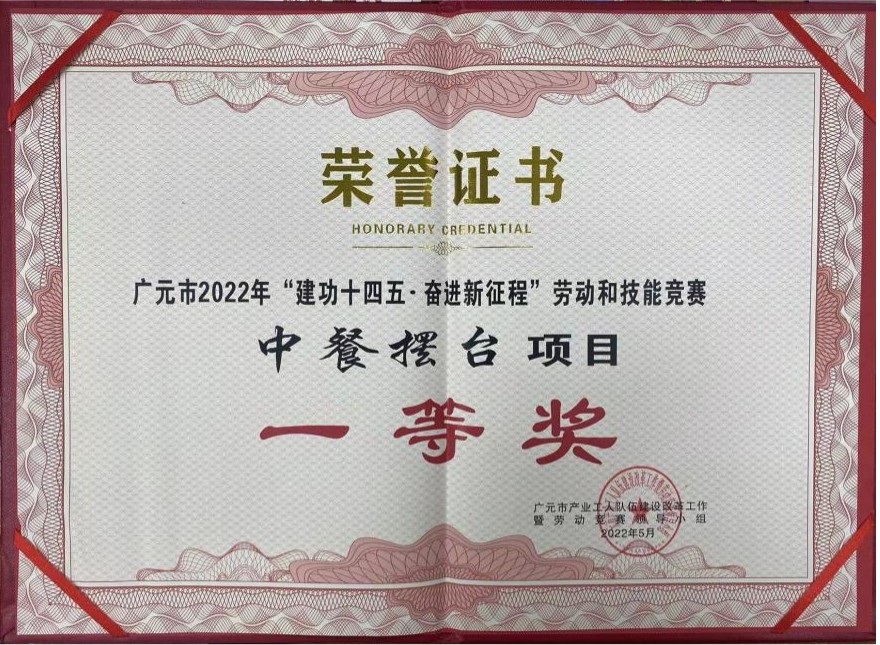 5月26日,鳳臺酒店代表利州區出戰廣元市總工會主辦的2022年“建功十四五·奮進新征程”勞動和技能競賽。此次競賽廣元市四縣三區共42名選手參加,各專業14位選手進行比拼。經過激烈角逐,鳳臺酒店派出的4名參賽選手全部脫穎而出,獲得大賽中餐擺臺團體一等獎、中式鋪床團體二等獎,囊括個人中餐擺臺一等獎、二等獎、中式鋪床二等獎、三等獎。