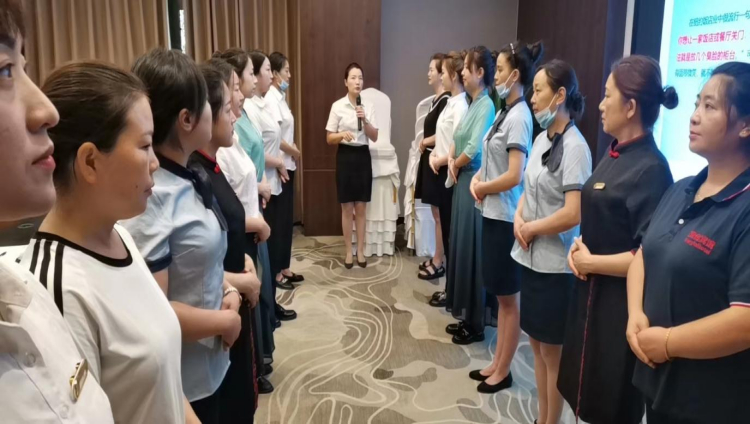 受疫情反復和宏觀經濟影響,近期,鳳臺酒店多起預定業務取消,經營壓力持續增大,為保障給客戶提供更優、更佳的服務,鳳臺酒店充分利用空檔期,分崗位制定培訓計劃練“內功”,持續開展禮儀禮貌、儀容儀表等方面崗位技能練兵,進一步夯實業務基礎、提升服務質量、增強員工素質,為“疫”后服務復蘇重振注入了一劑“強心針”。
